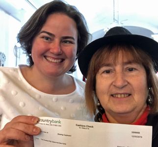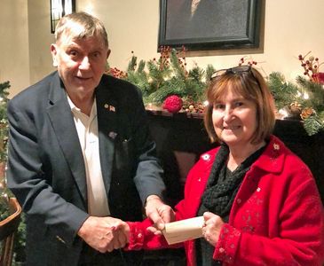 Our second donation this year was presented on December 11 to the Sharing Cupboard in West Brookfield, which is located in the First Congregational Church. Accepting a $250 check on behalf of the church is Pastor Stacey Kullgren. Lynn Duffy-O'Shea presented the donation from Rotary.