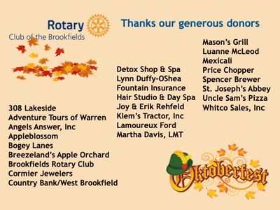 Rotary thanks all our Oktoberfest donors. We also appreciate the support of our generous hosts at Ye Olde Tavern in West Brookfield, without whom this event would not be possible..
