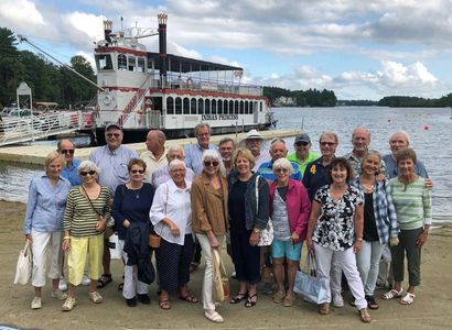 In August, Rotarians from Sturbridge, The Brookfields, and Southbridge gathered on the shore of Lake Chargoggagoggmanchauggagoggchaubunagungamaugg in Webster for some picturesque fun and socializing. After a narrated trip around Webster Lake on the restored steamboat “Indian Princess”, the party continued with dinner at Samuel Slater’s Restaurant near the dock. Following a brief squall to clear the air just before boarding, Mother Nature smiled on the happy group for the rest of the afternoon
