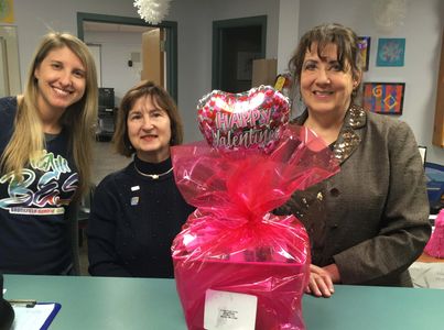 Above, Treasurer Lynn Duffy-OShea presents the seasonal gift to staff members at Brookfield Elementary School on February 8.