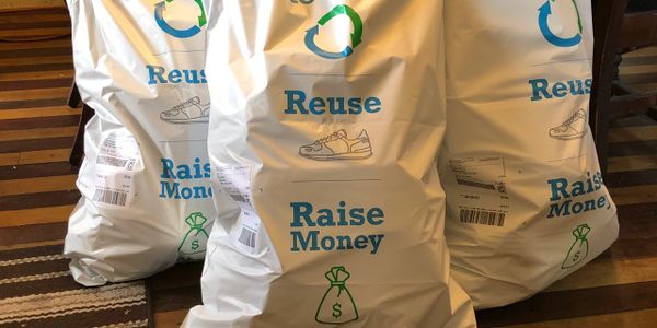 Sneakers bagged and ready for shipment to our 'Got Sneakers] recycling partner